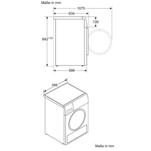 KÍCH THƯỚC LẮP ĐẶT CỦA MÁY SẤY QUẦN ÁO BOSCH WTW87541