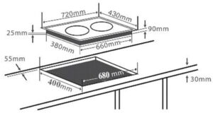 - Kích thước khoét lỗ: 680 x 400mm