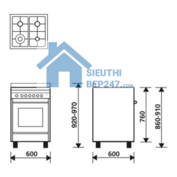 Kích THƯỚC LẮP ĐẶT SẢN PHẨM BẾP TỦ LIỀN LÒ ROSIERES MQ6613VI: