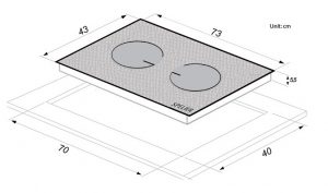 • Kích thước bếp (D x R x C): 73 x 43 x 5,5 cm