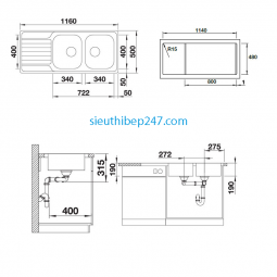 THÔNG SỐ KỸ THUẬT CỦA CHẬU RỬA BÁT BLANCO DINAS 8S