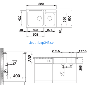 + Chậu rửa bát Blanco lemis XL làm bằng thép không rỉ phù hợp với hầu hết các tủ bếp