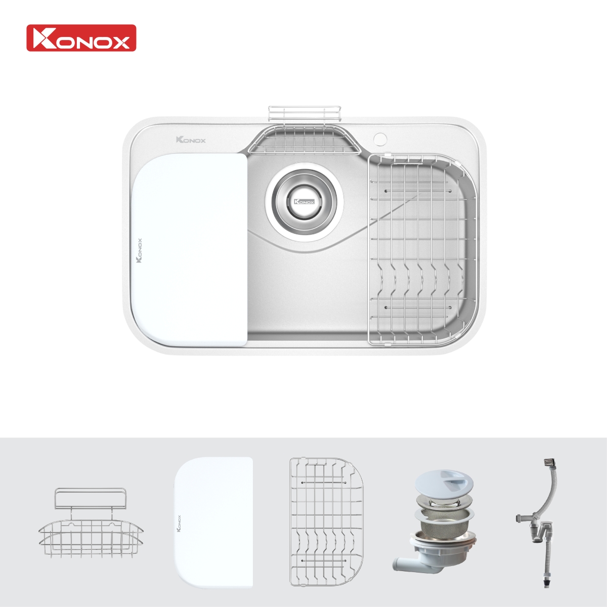 Bộ Phụ Kiện Full Set Tiện Lợi Của Chậu Rửa Bát Konox Tari 7851SM