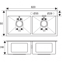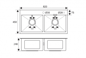 Kích thước chậu rửa bát Luxsink LS – 8245C: