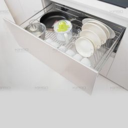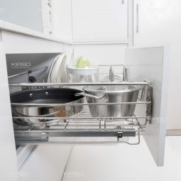 - Giá xoong nồi KIASO KG063 được thiết kế phù hợp với các khoang tủ bếp bên dưới, gắn cánh tủ đảm bảo thẩm mỹ không gian bếp.