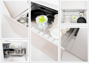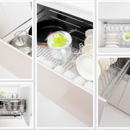 - Hai ray trượt được gắn vào 2 bên hộc tủ, giảm chấn tích hợp giúp giá chuyển động trượt ra vào êm ái, không gây tiếng ồn. Chỉ với thao tác kéo nhẹ cánh tủ, bạn có thể dễ dàng nhìn thấy toàn bộ giá, giúp việc sắp xếp và sử dụng xoong nồi bát đĩa trở nên dễ dàng hơn.