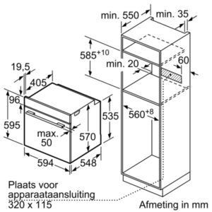 + Kích thước lò nướng (CXRxS): 595 mm x 594 mm x 548 mm