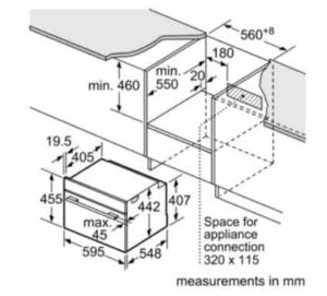 KÍCH THƯỚC LẮP ĐẶT SẢN PHẨM CỦA LÒ NƯỚNG KÈM HẤP CSG656RS1: