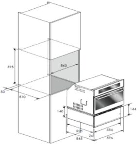 KÍCH THƯỚC LẮP ĐẶT SẢN PHẨM LÒ NƯỚNG KÈM VI SÓNG ROSIERES RMG450B :
