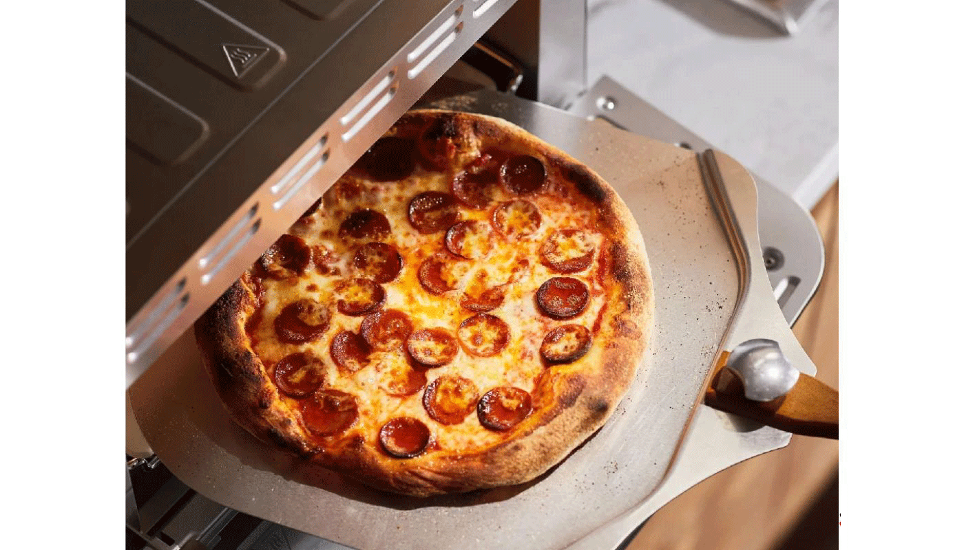 Với công suất mạnh mẽ 1800W và dải nhiệt từ 176 – 371°C, lò giúp nướng chín đều, mang đến hương vị pizza thơm ngon đúng chuẩn.
