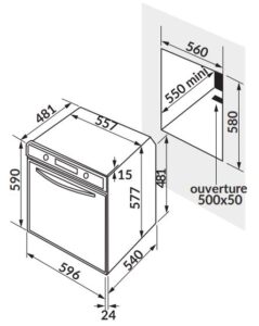 - Kích thước âm tủ (DxRxC) 560x550x580mm