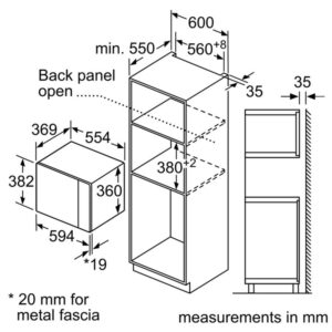KÍCH THƯỚC LẮP ĐẶT SẢN PHẨM CỦA LÒ VI SÓNG BOSCH BEL554MS0B