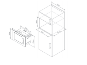 Kích thước lắp đặt sản phẩm của lò vi sóng Rosieres RMG20/1RB: