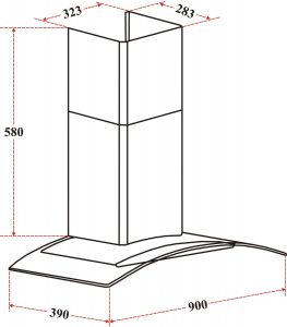 Kích thước máy hút mùi (dài x sâu x cao) : W900 x D390 x H580mm