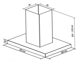 Kích thước máy hút mùi (dài x sâu x cao) : W900 x D600 x H(650-1150)mm