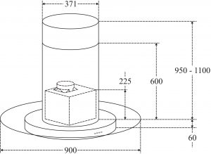 Kích thước máy hút mùi (dài x sâu x cao) : W900 x D371 x H1100mm