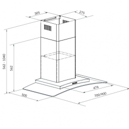 Kích thước máy hút mùi (dài x sâu x cao) : W700 x D500 x H560-1050mm