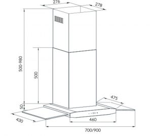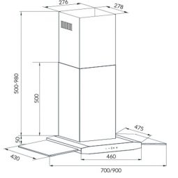 Kích thước máy hút mùi (dài x sâu x cao) : W700 x D500 x H560-1050mm