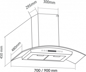 Kích thước máy hút mùi (dài x sâu x cao) : W900 x D500 x H550mm
