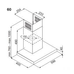 KÍCH THƯỚC LẮP ĐẶT SẢN PHẨM CỦA MÁY HÚT MÙI FAGOR 3CFS – 6032X: