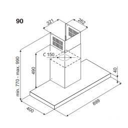 KÍCH THƯỚC LẮP ĐẶT SẢN PHẨM CỦA MÁY HÚT MÙI FAGOR 3CFS – 9032X: