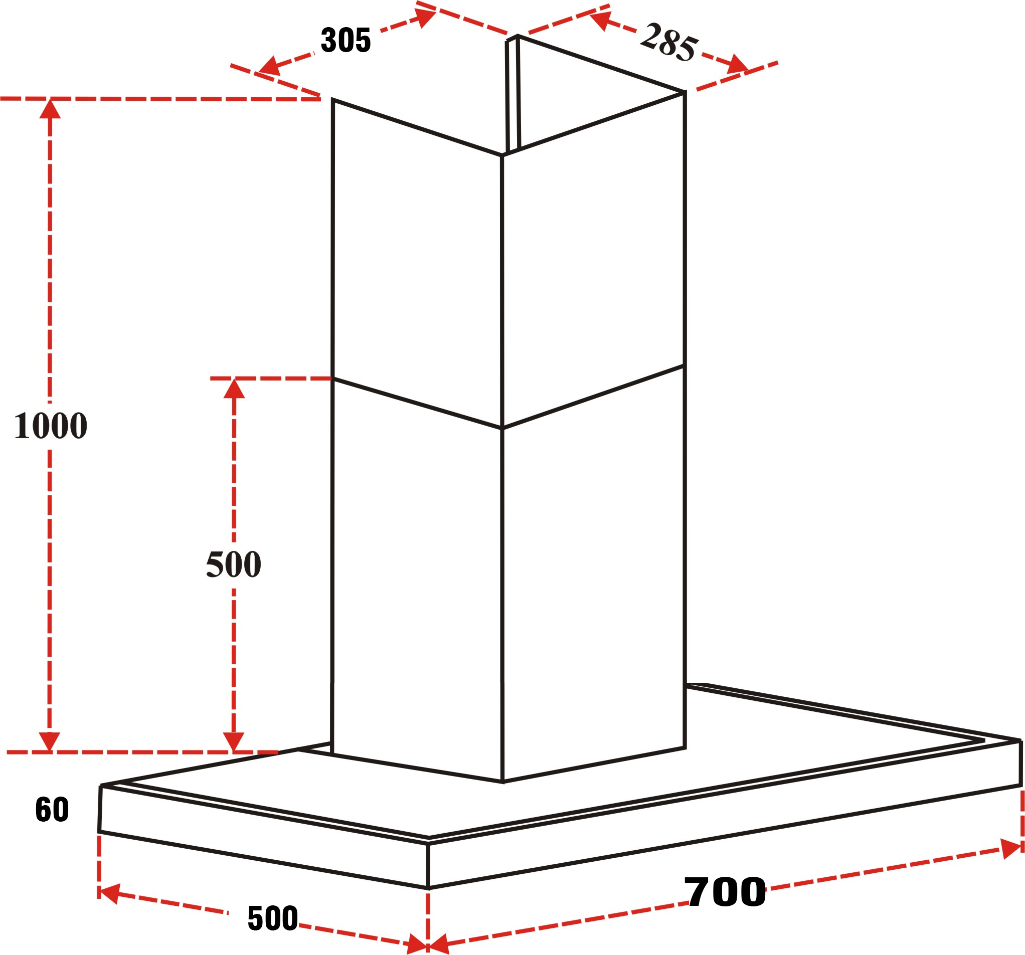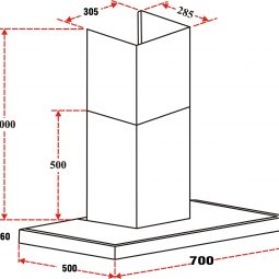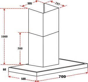 Kích thước máy hút mùi (dài x sâu x cao) : W700 x D500 x H(550-1000)mm
