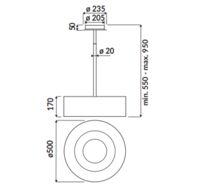 - Kích thước (DxRxC) 500×170(550/950)mm