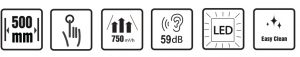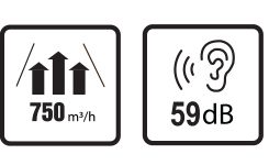- Hiệu suất hút không khí tối đa: 750m3/h