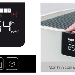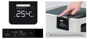 – Chức năng: Đặt thời gian Tắt/Mở máy – Lựa chọn chế độ tự hoạt động (Auto) – Tăng cường (Power) – Khóa trẻ em – Thông báo thay bộ lọc