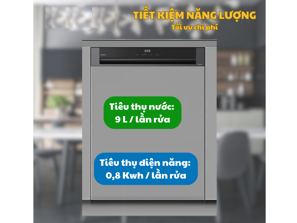Máy rửa bát GrandX SMI8GX68 nổi bật với khả năng tiết kiệm năng lượng và nước tối ưu.
