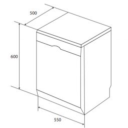 Máy rửa bát Kaff KF – SW800 thiết kế lắp độc lập hoặc lắp âm vào tủ bếp, với kích thước máy rộng 550 mm, cao 600 mm, sâu 500 mm phù hợp với nhiều không gian bếp.