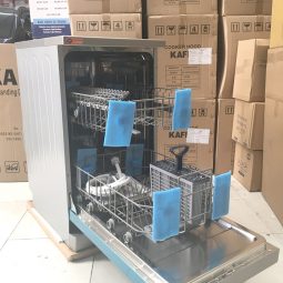 Máy rửa bát Kaff KF – W45A1A401J được thiết kế 2 giàn rửa dung tích 9 bộ đồ ăn Châu Âu, bên trong có hệ thống đựng bát đũa dao, thìa, dĩa… tiện lợi cho người sử dụng. Thiết bị sử dụng vòi phun áp lực lớn đảm bảo làm sạch mọi vết bẩn, khoang chứa đựng muối, nước làm bóng chuyên dụng. Máy sẽ làm thay đôi tay của người dùng để rửa sạch tất cả các vật dụng 1 cách hoàn hảo nhất.