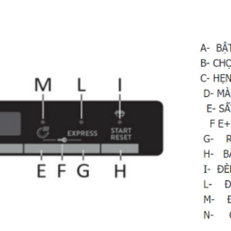 | P9 | PRE-WASH | Rửa tráng, chức năng này làm sạch sơ bát đĩa (trong vòng 5 phút mà không cần dùng đến chất rửa) cho đến khi bạn muốn tích đủ bát đĩa cho một lần rửa trong ngày. | |