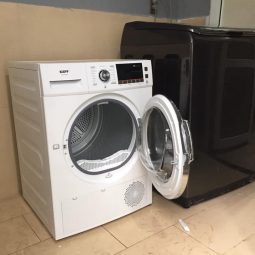 Với công nghệ sấy ngưng tụ: Nước của chương trình sấy sẽ được tích tụ vào khay thay vì sử dụng đường ống dẫn nước ra ngoài. Hệ thống SensitiveDrying Sytem giúp quần áo thấm một luồng không khí từ mọi phía khiến quần áo được sấy khô tuyệt đối mà sản phẩm vẫn mềm mại.