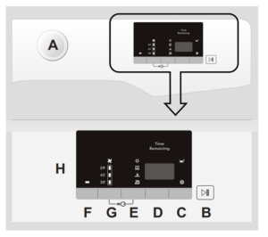 BẢNG ĐIỀU KHIỂN CHẠM CẢM ỨNG KẾT HỢP NÚM XOAY – CỬA ĐÓNG MỞ BẰNG KHÓA ĐIỆN TỪ CỦA MÁY SẤY ROSIERES RILSC10DRG-04