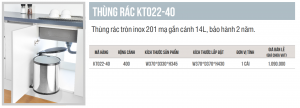 - Thùng rác âm tủ KT022 được làm từ nguyên liệu inox bền đẹp và dễ dàng vệ sinh làm sạch.